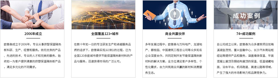 歐普森積極投身于節能環保新材料的生產應用建設,致力于為客戶提供專業的節能保溫解決方案和服務,做大做強綠色節能建筑新材料企業品牌。歐普森將持續以人為本,以品質為基,執著于科技創新,追求企業效益、社會效益與生態環境的三贏!